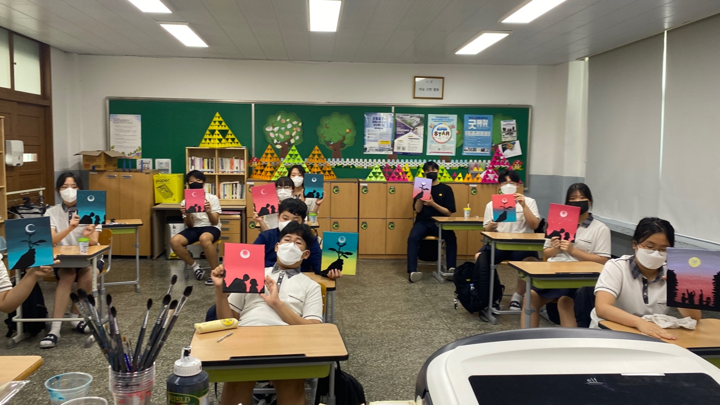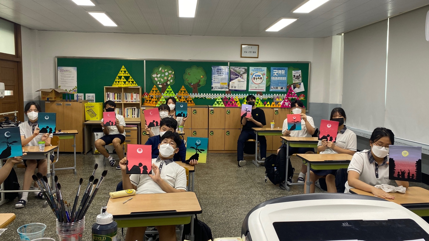 [찾아가는 원데이클래스] 영천시교육지원청 신녕중학교 8회차 아크릴풍경화 수업 진행