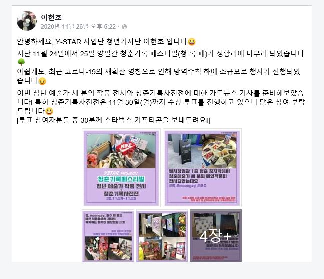 SNS 서포터즈 2기의 첫 활동은 지난 11. 24. ~ 25. 양일 간 진행되었던 제 1회 청.록.페 홍보였습니다!