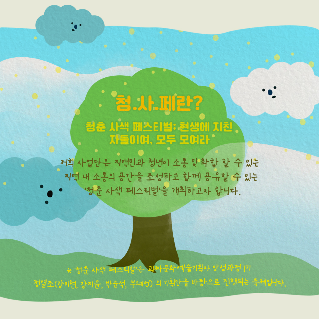 작년 제 1회 '청춘 기록 페스티벌'에 이어 올해 제 2회 '청춘 사색 페스티벌'을 개최하게 되었습니다.