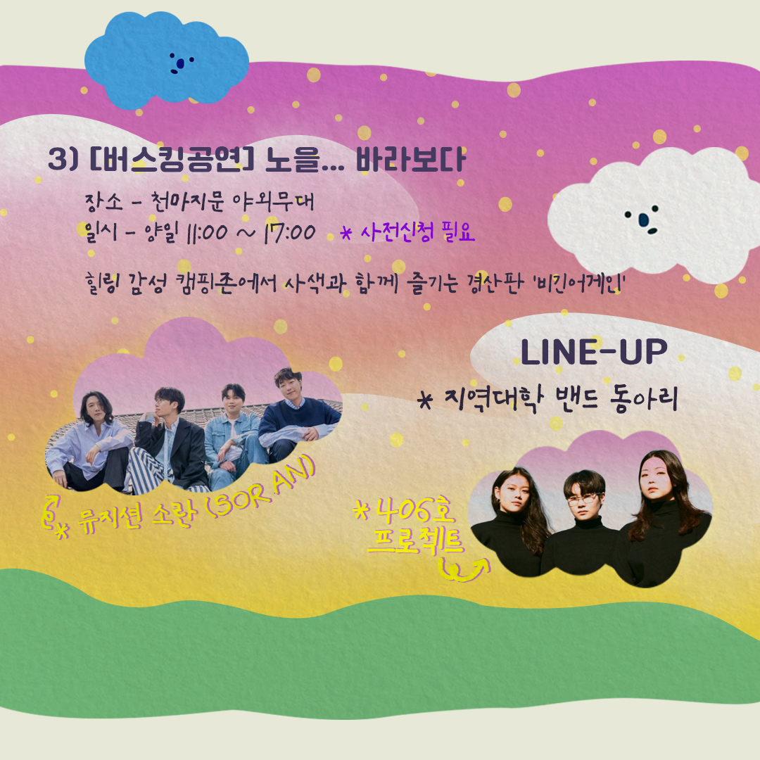 ☆ LINE-UP : 지역대학 밴드 동아리, 뮤지션 소란(SORAN) & 406호 프로젝트 ☆
