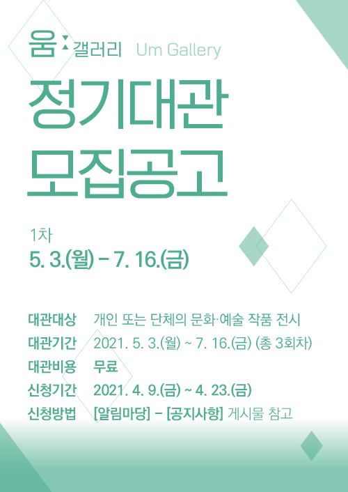 - 대관대상 : 개인 또는 단체의 문화·예술 작품 전시