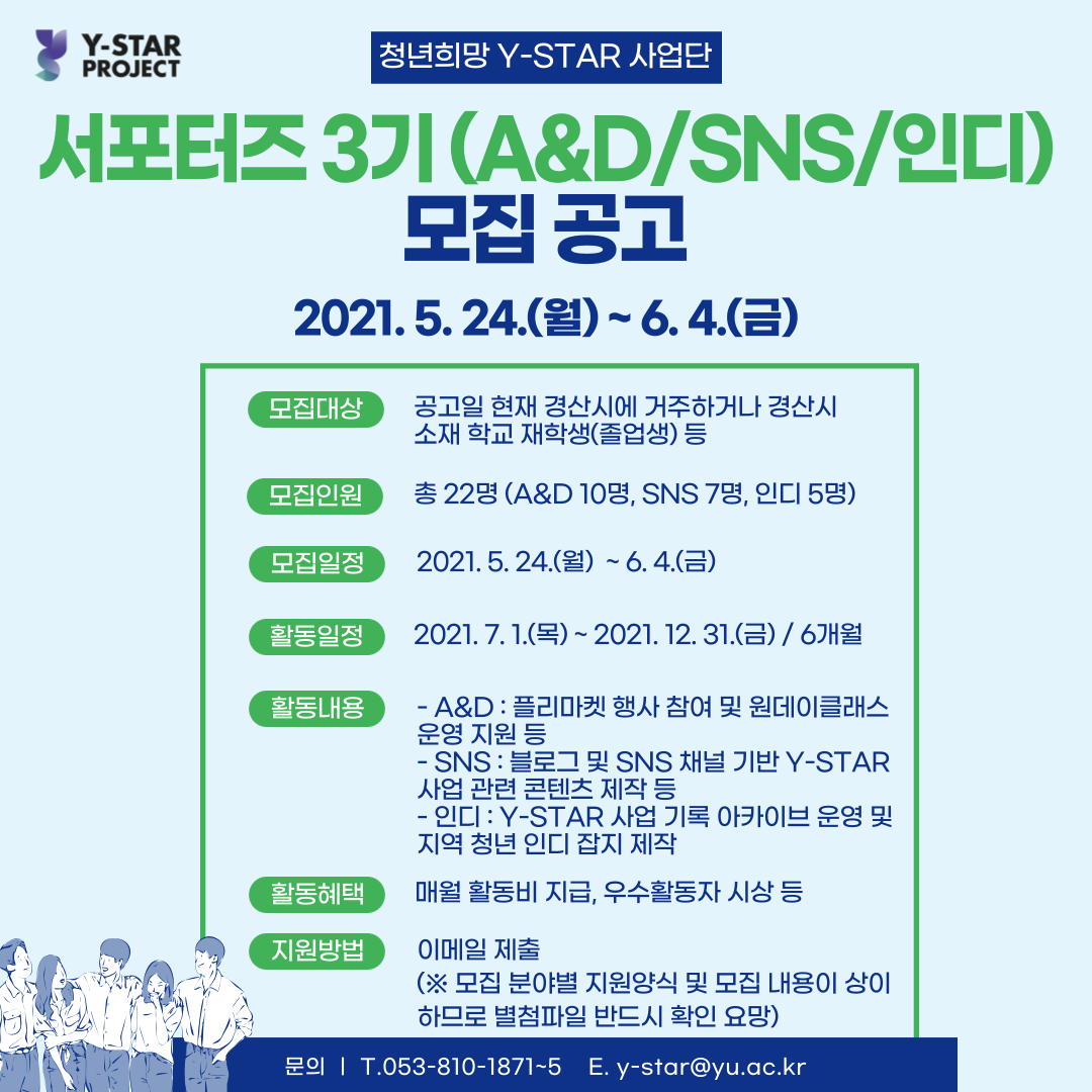 안녕하세요. 청년희망 Y-STAR 사업단입니다.