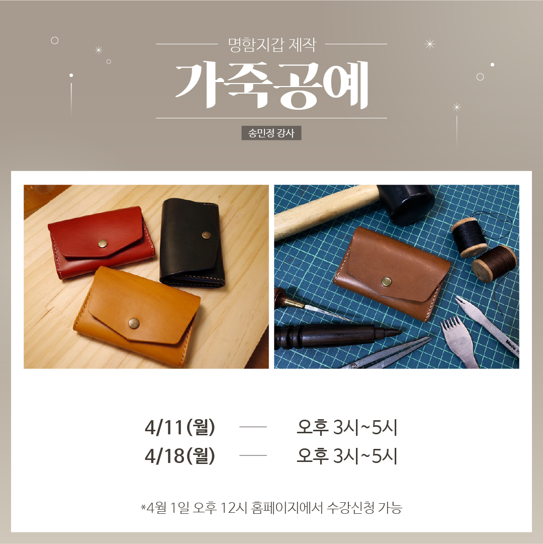 • 제목 [모집마감] [원데이클래스] 4/11(월) 오후 3시 명함지갑 만들기
