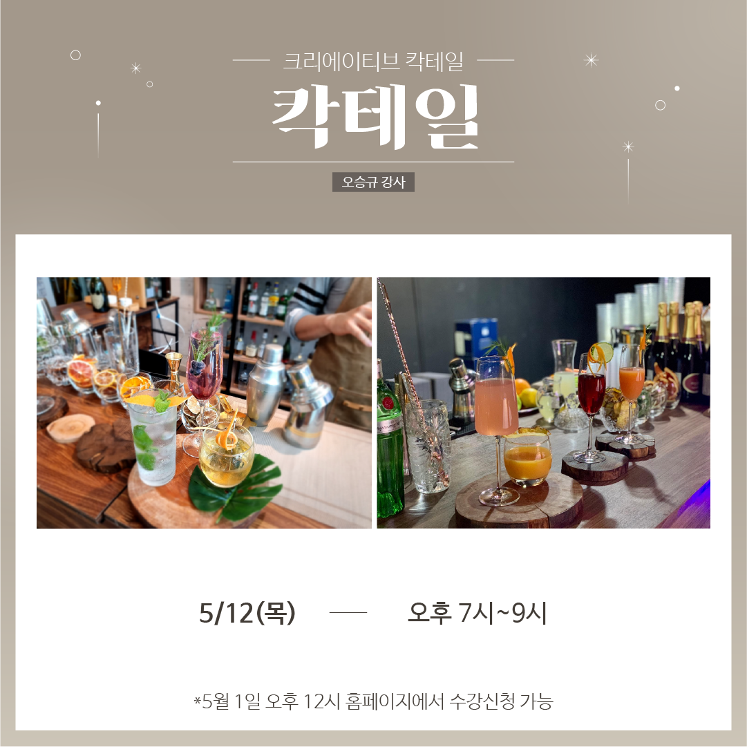 [원데이클래스] 5/12(목) 오후 7시 크리에이티브 칵테일