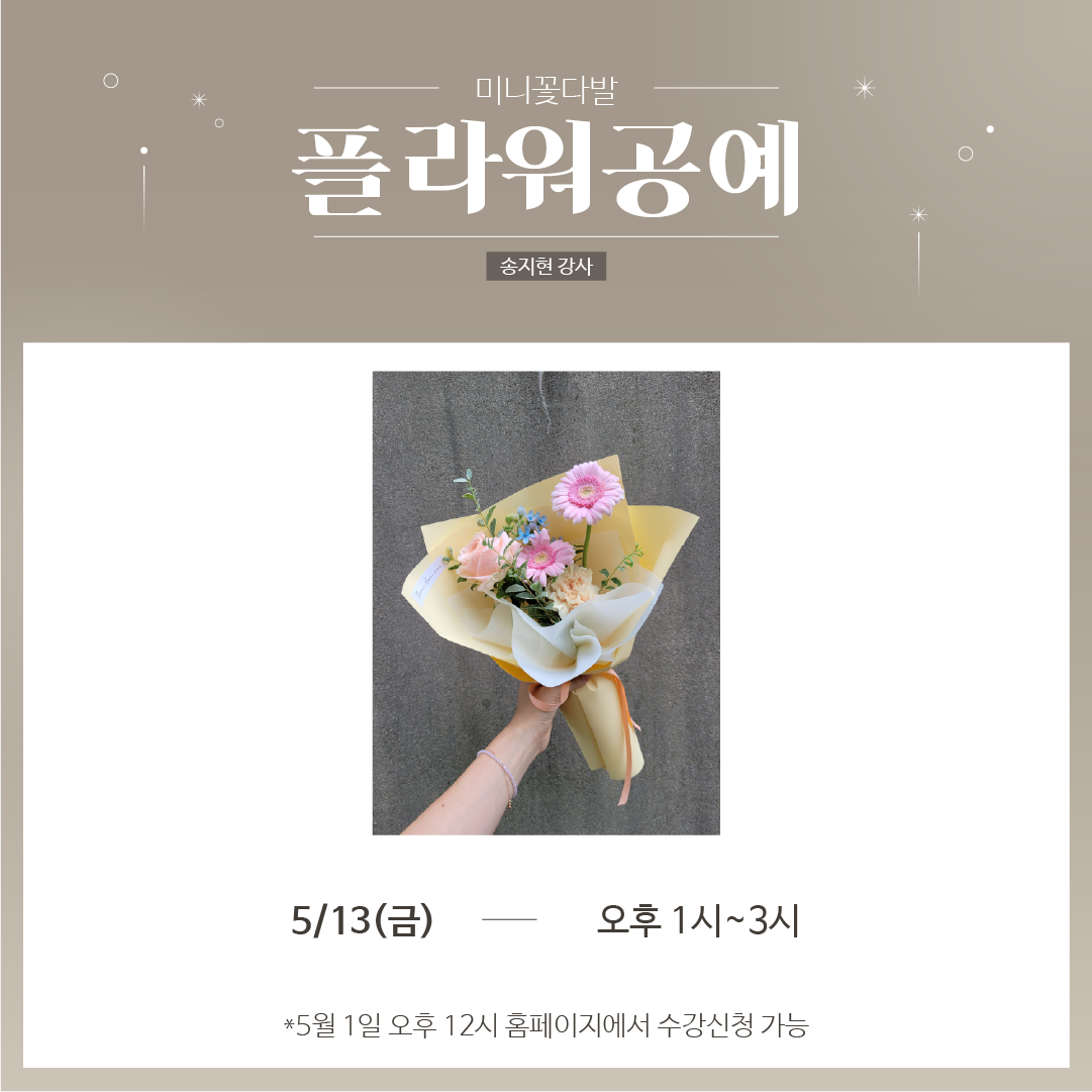 • 제목 [모집마감] [원데이클래스] 5/13(금) 오후 1시 미니꽃다발 만들기