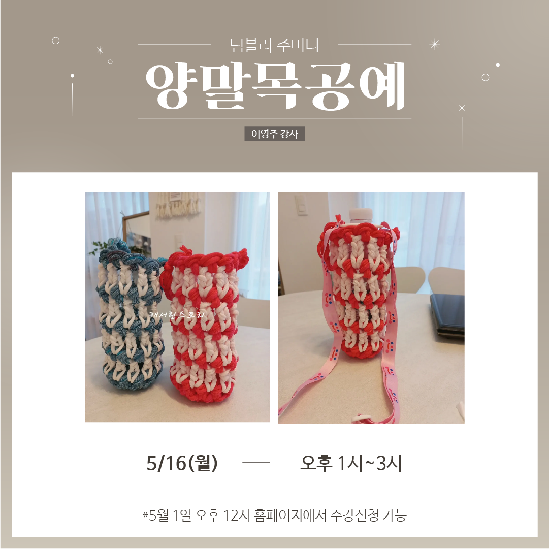 • 제목 [모집마감] [원데이클래스] 5/16(월) 오후 1시 텀블러 주머니 만들기