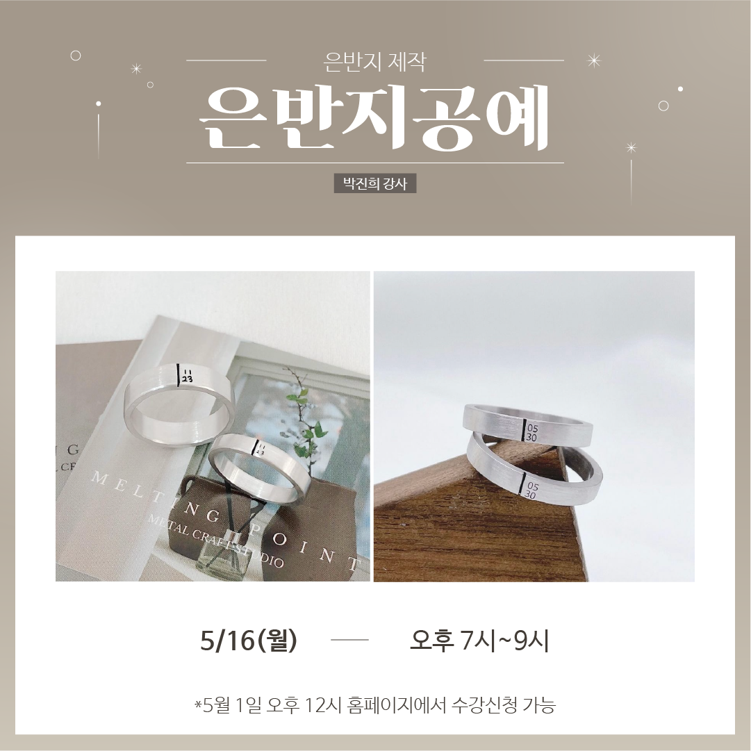• 제목 [모집마감] [원데이클래스] 5/16(월) 오후 7시 은반지 제작