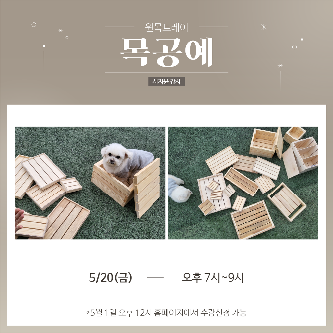 • 제목 [모집마감] [원데이클래스] 5/20(금) 오후 7시 원목트레이 만들기