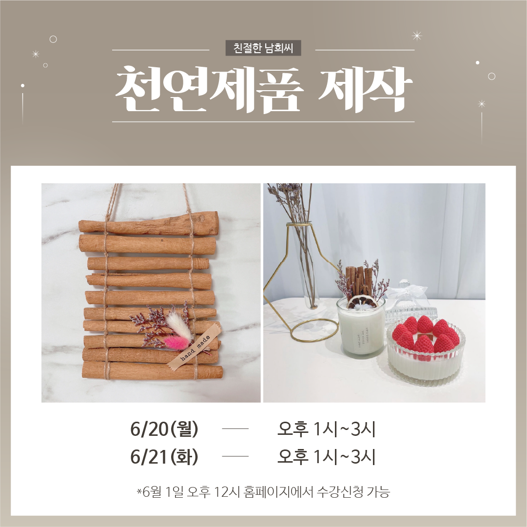 [원데이클래스] 6/20(월) 오후 1시 천연제품 제작