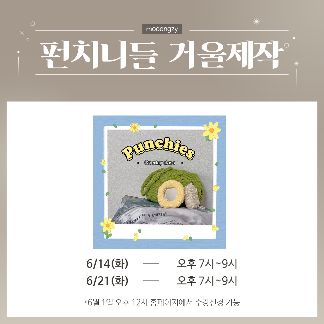 • 제목 [모집마감] [원데이클래스] 6/21(화) 오후 7시 펀치니들 거울제작