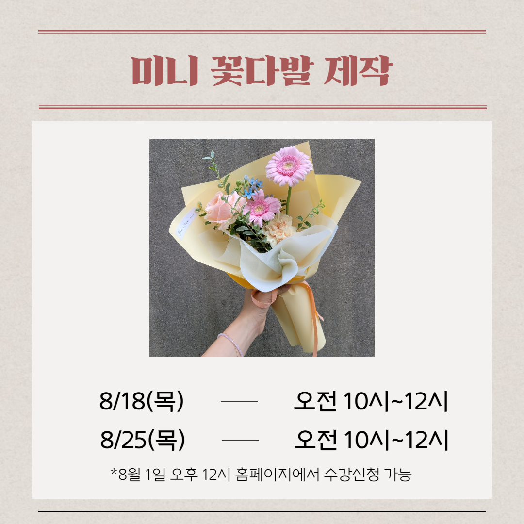 • 제목 [모집마감] [원데이클래스] 8/18(목) 오전 10시 미니 꽃다발 제작