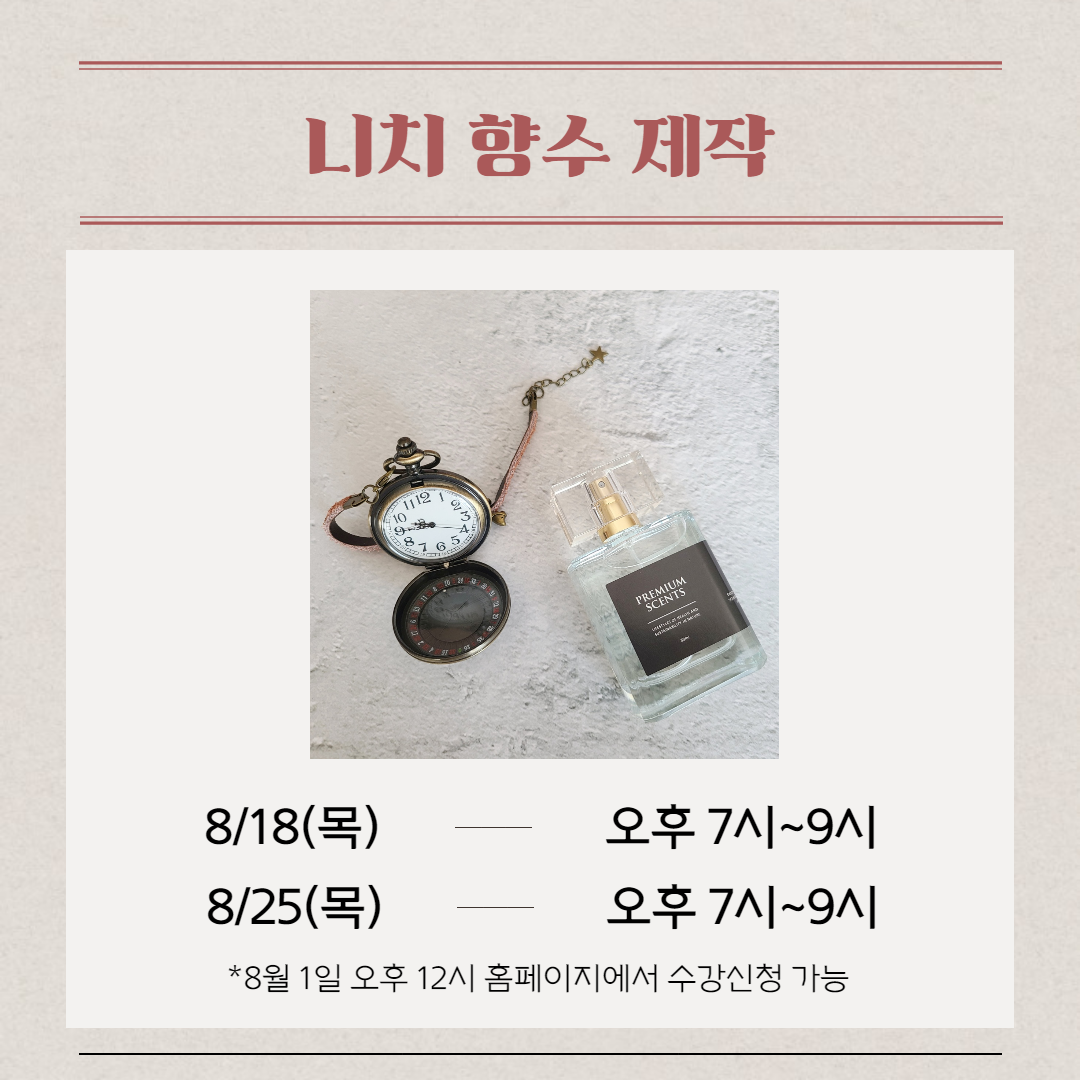 • 제목 [모집마감] [원데이클래스] 8/18(목) 오후 7시 니치 향수 제작