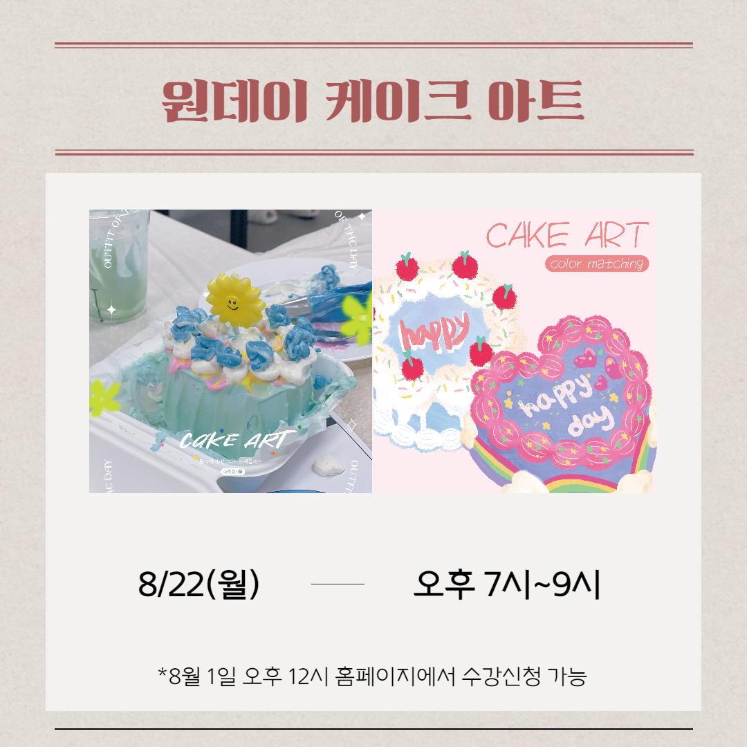 [원데이클래스] 8/22(월) 오후 7시 원데이 케이크 아트