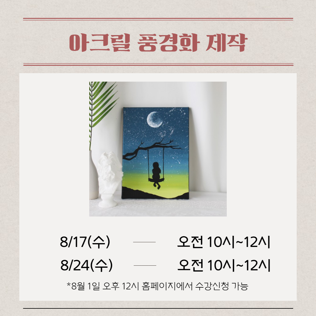 • 제목 [모집마감] [원데이클래스] 8/24(수) 오전 10시 아크릴 풍경화 제작
