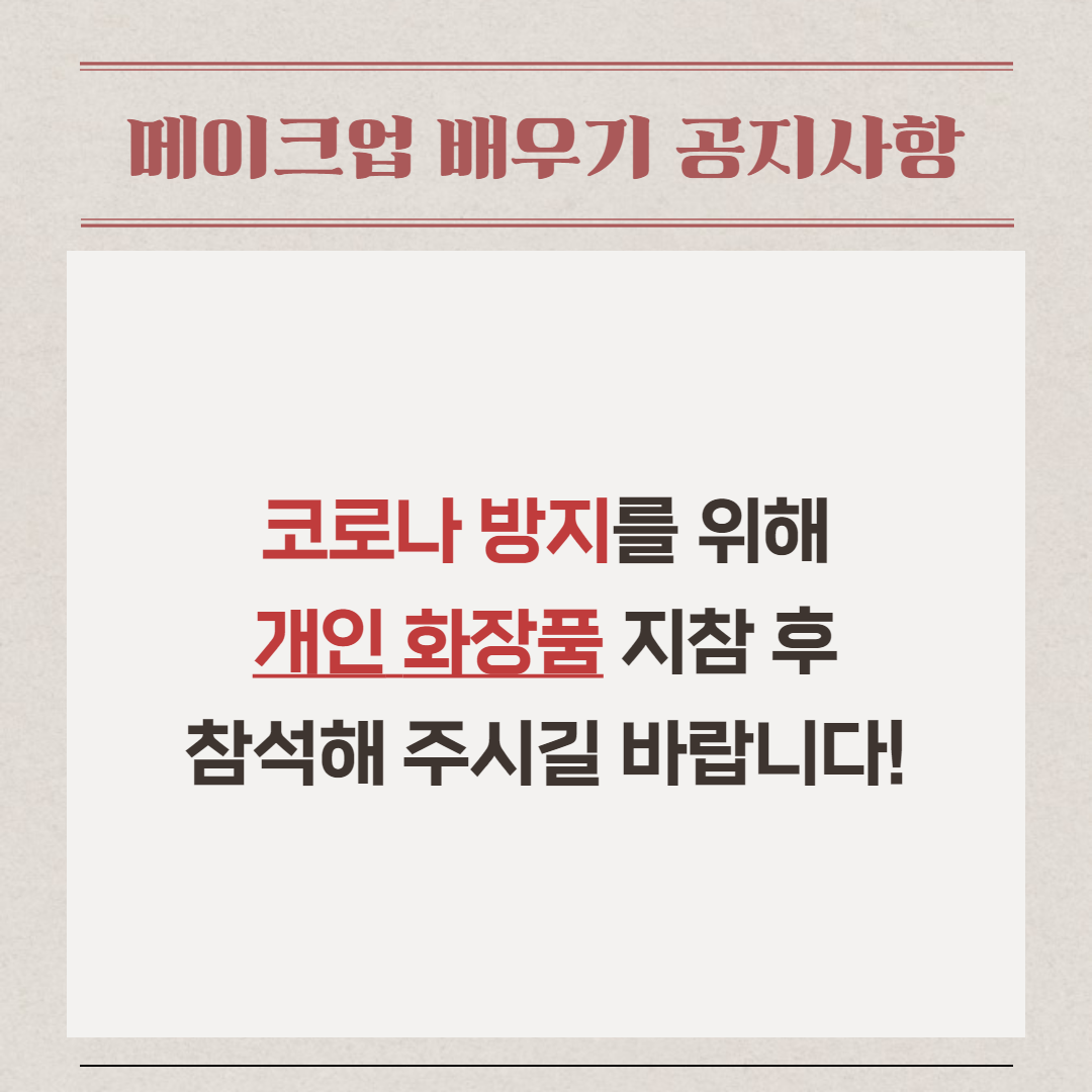 • 제목 [모집마감] [원데이클래스] 10/19(수) 오후 7시 메이크업 배우기