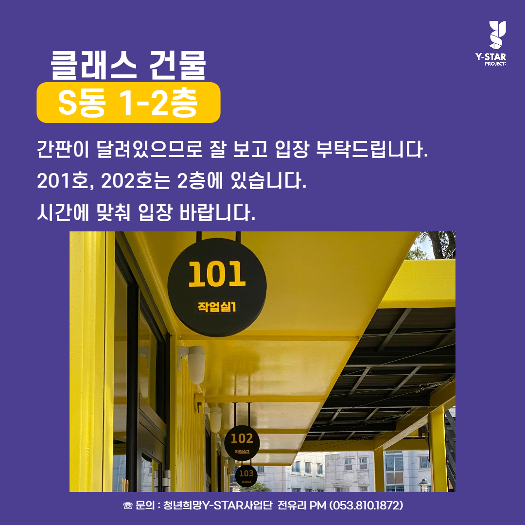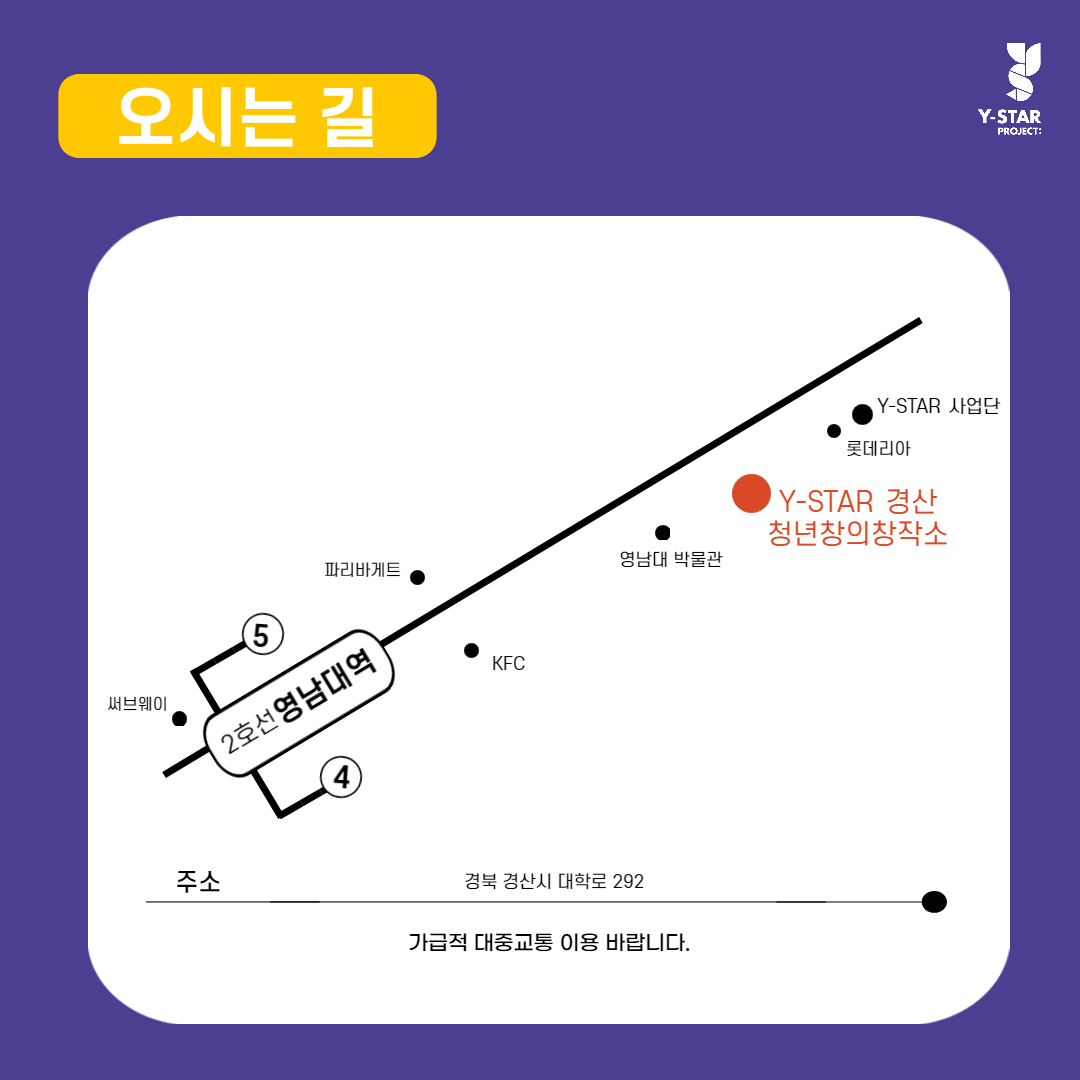 • 장소Y-STAR 경산 청년창의창작소 S동 (노란색 건물)