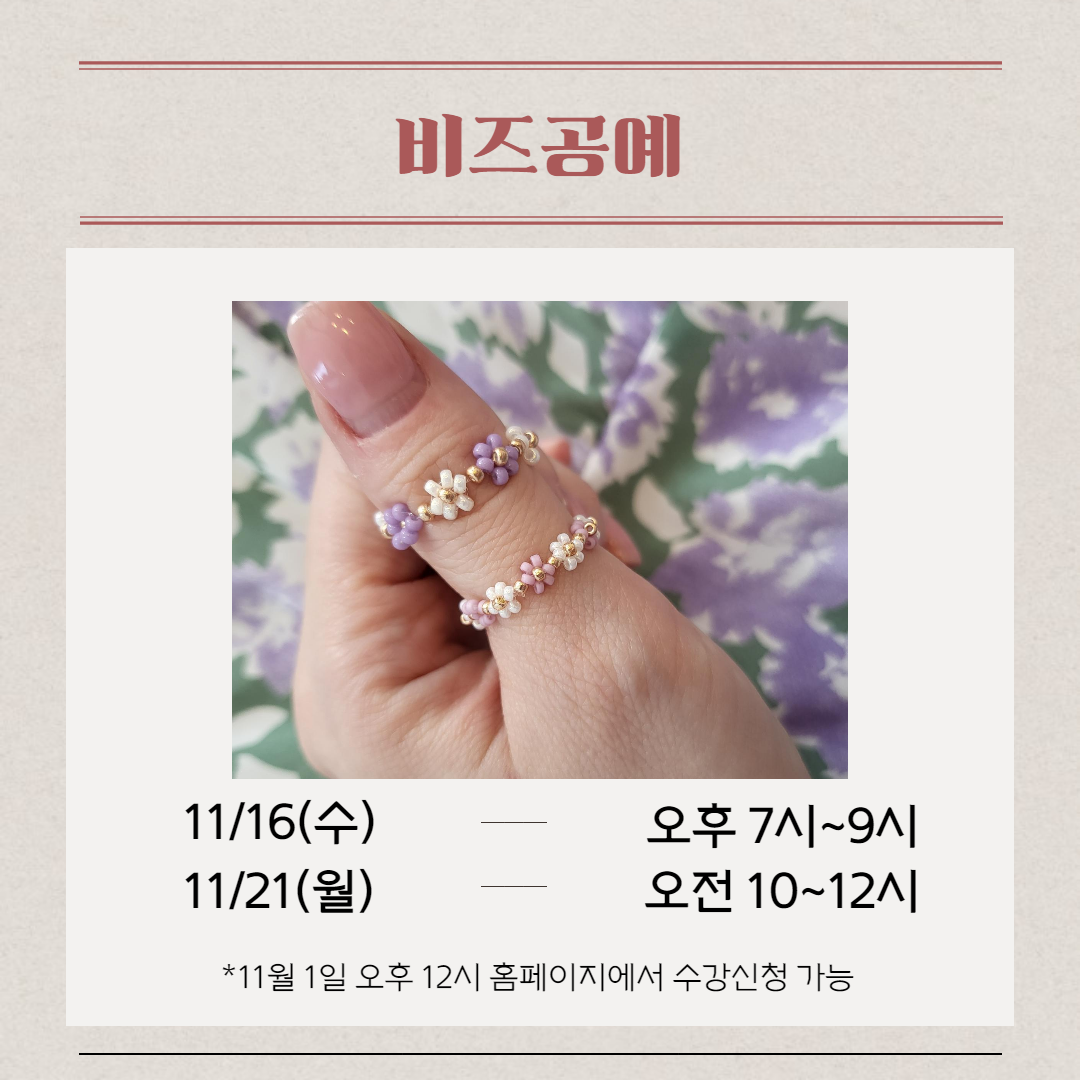 [원데이클래스] 11/21(월) 오전 10시 비즈공예