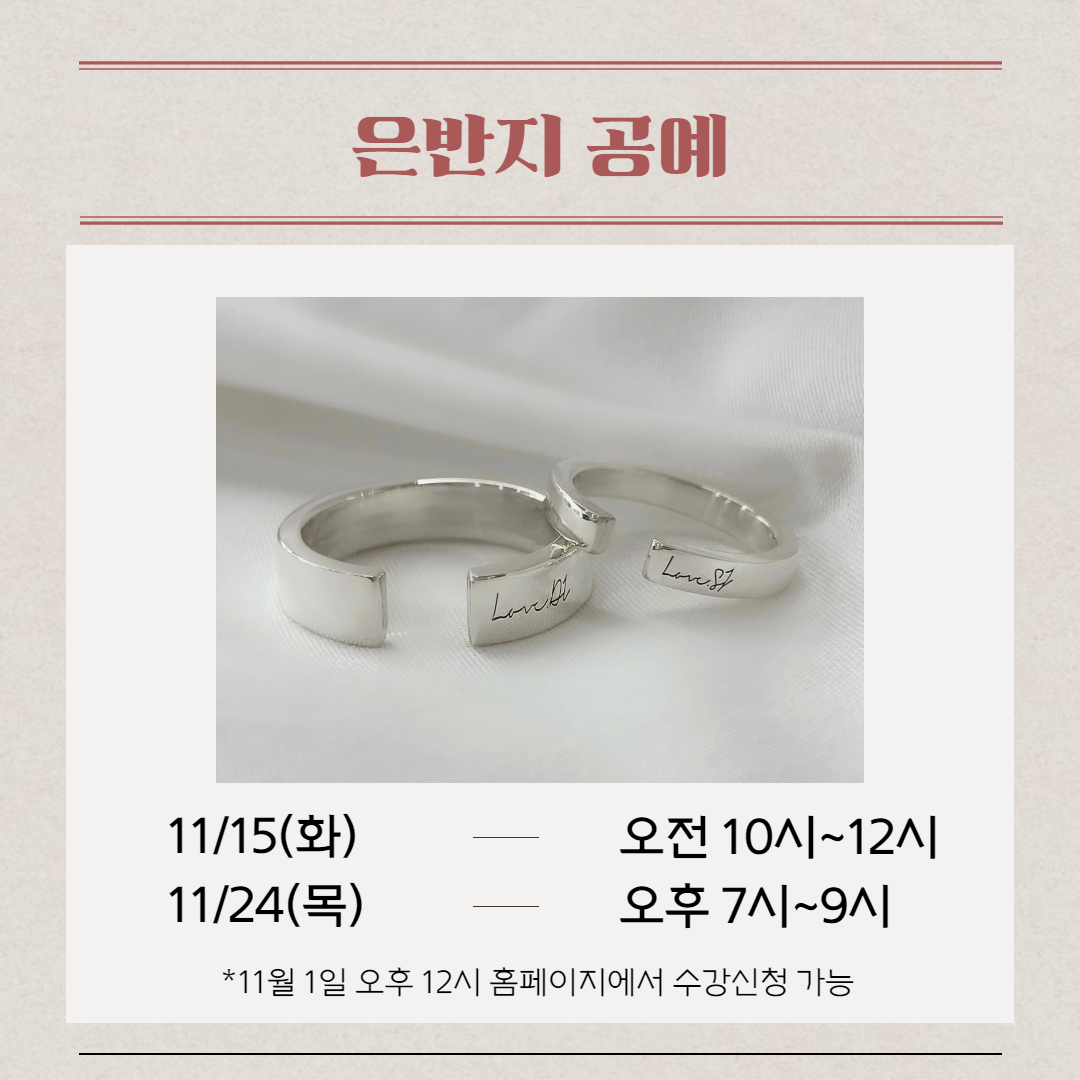 [원데이클래스] 11/24(목) 오후 7시 은반지 공예