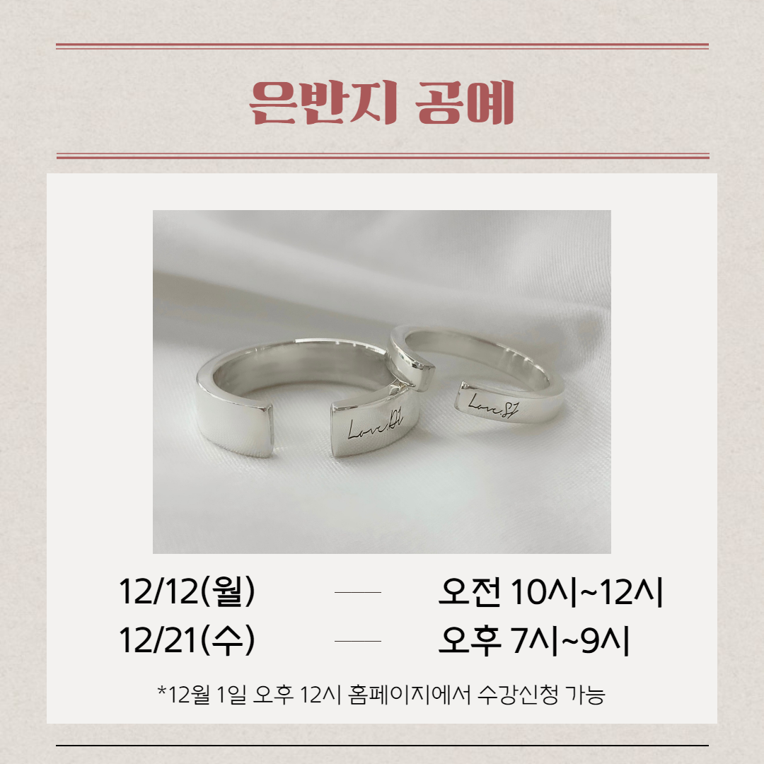 [원데이클래스] 12/12(월) 오전 10시 은반지 공예