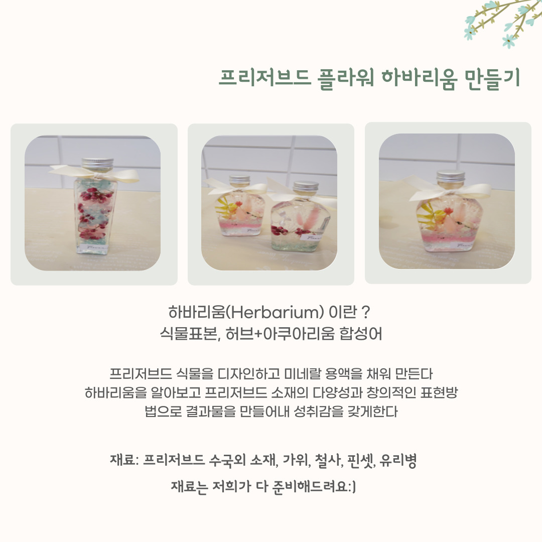• 제목 [모집마감] 6.10(목) 오전 11시 50분 - 프리저브드 플라워 하바리움 만들기